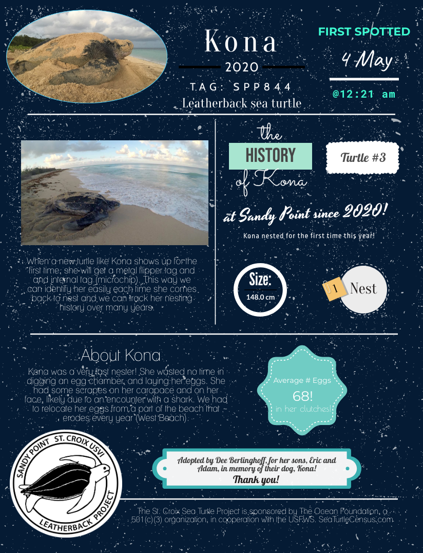 Turtles recently adopted or observed Click on your turtle’s name to see her nesting summary for this year. There are still turtles available for symbolic adoption ❤️